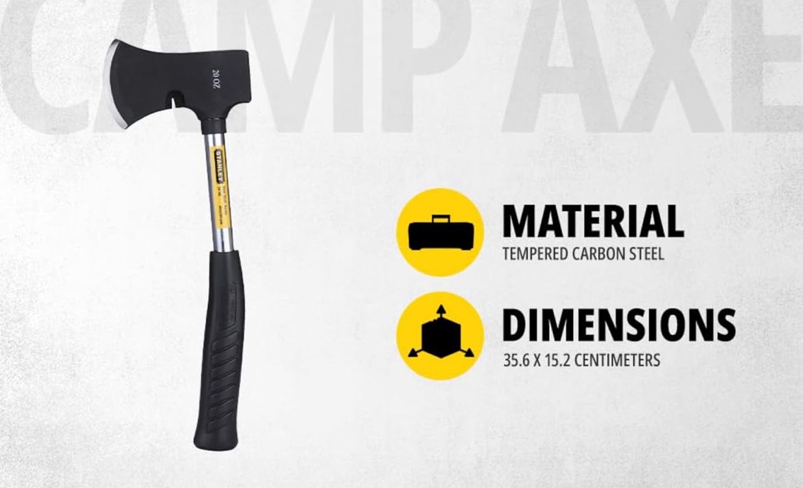 This compact camp axe is designed for safe and efficient use during camping. Its hardened carbon steel head delivers clean, controlled cuts for light wood chopping, while the anti-rust coating ensures durability in outdoor conditions. The ergonomic, non-slip grip provides a firm hold, reducing the risk of slipping and improving safety during use. ๐ช