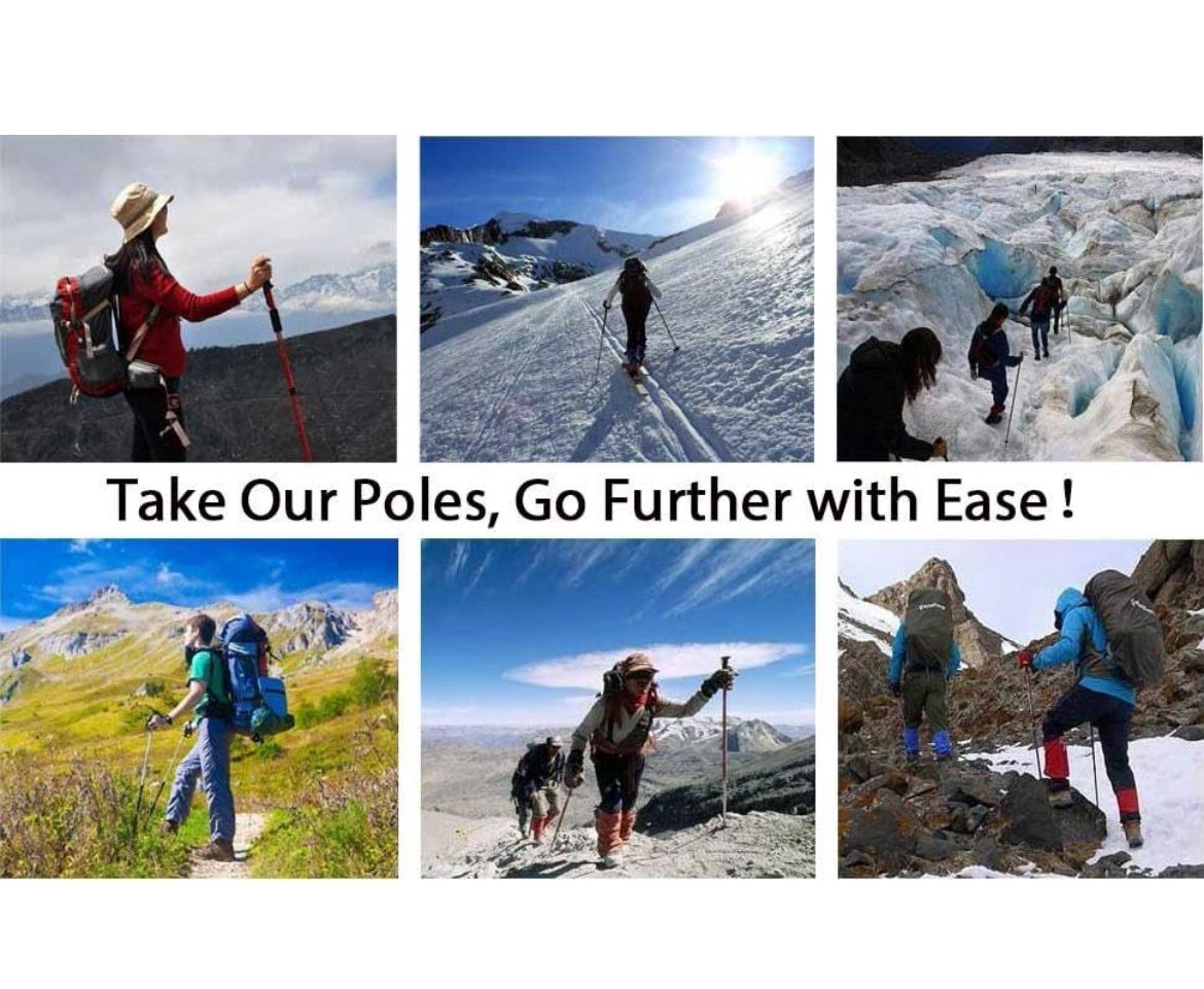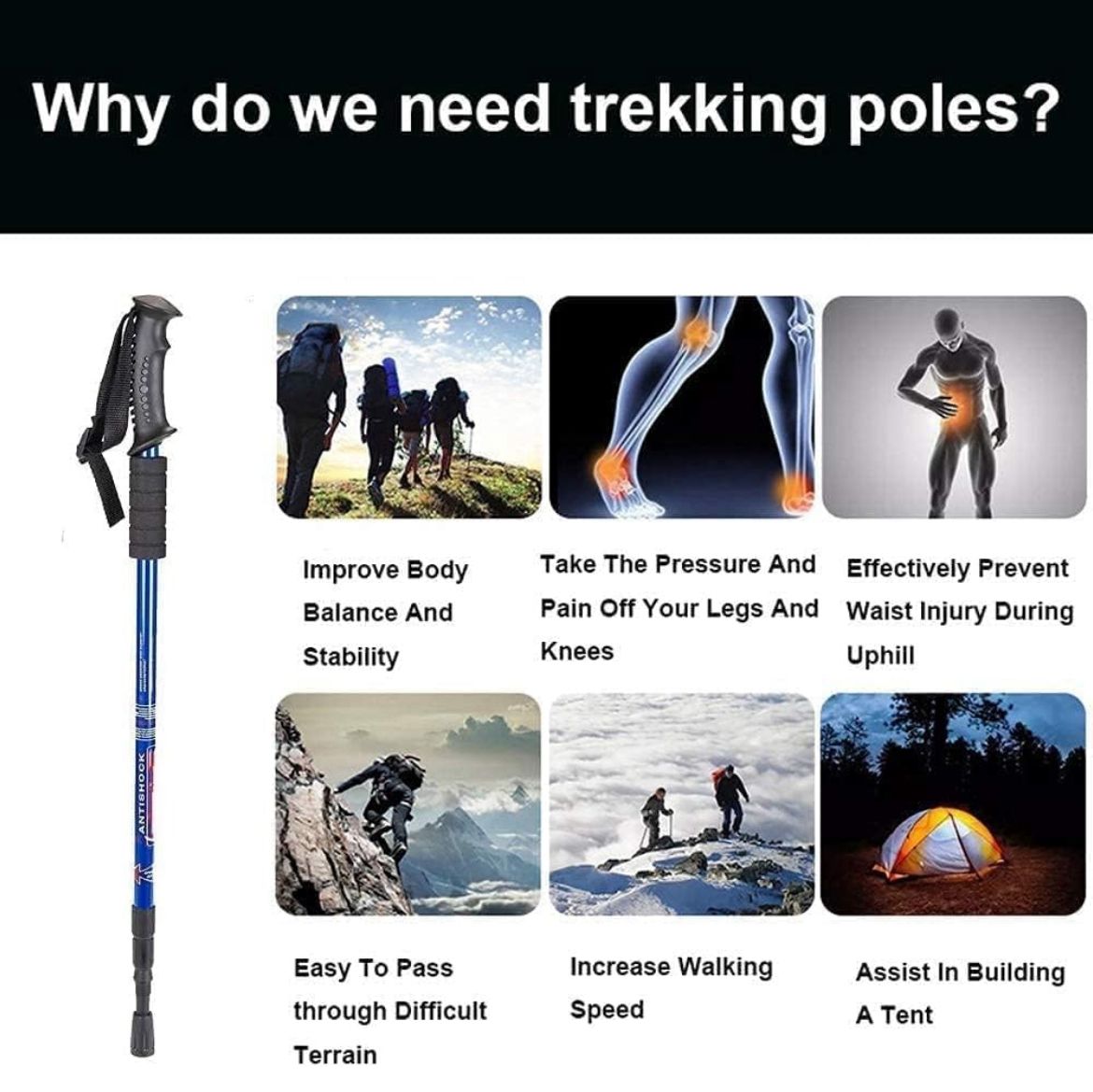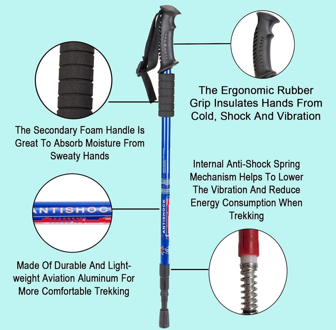 Designed to provide stability, comfort, and reduced strain during treks. Made from lightweight aluminum, it features an ergonomic rubber grip and an internal anti-shock spring to minimize joint impact. ๐ฅพ